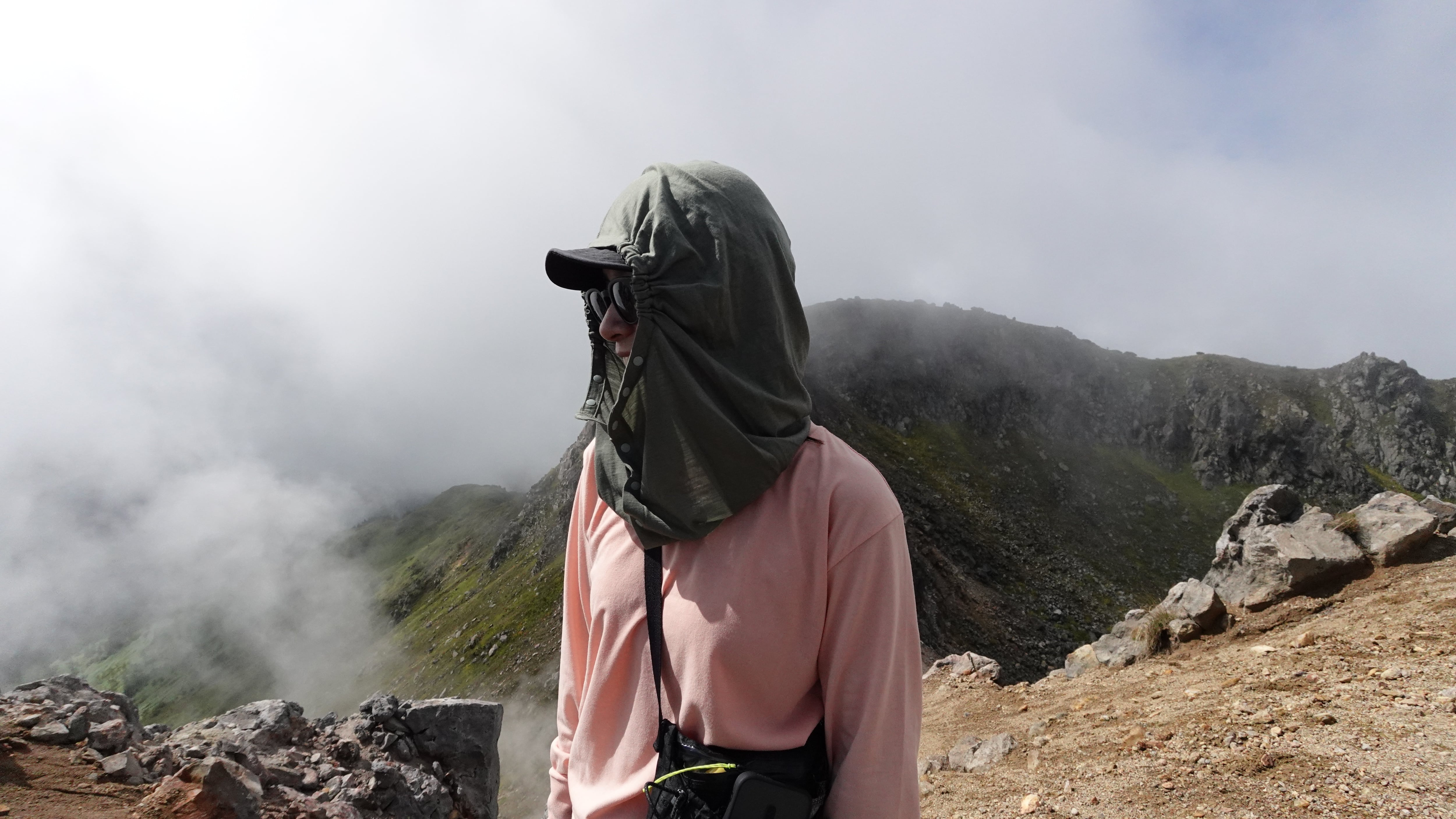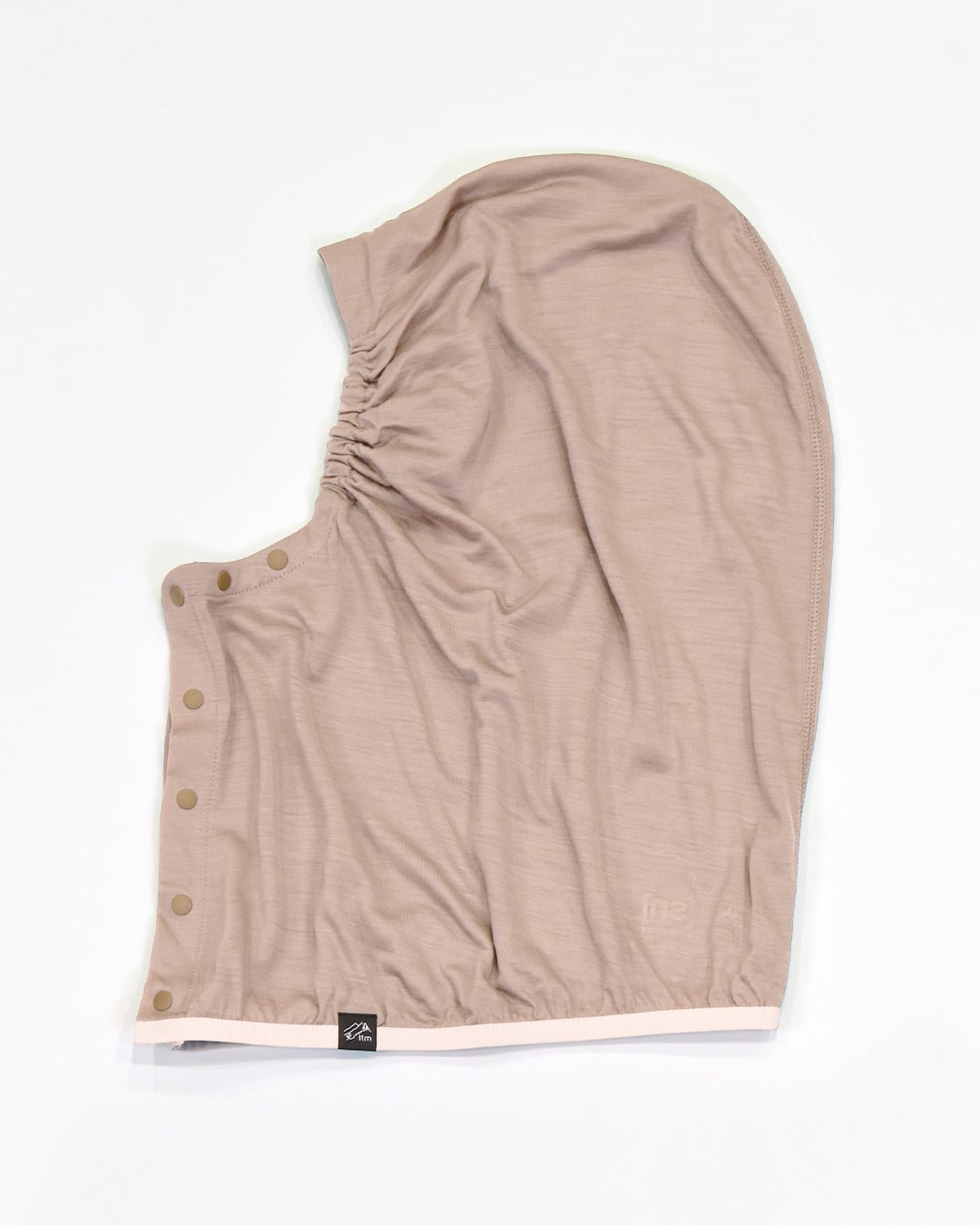 全部留めればバラクラバのように顔まわりを覆い、防寒・日除けに