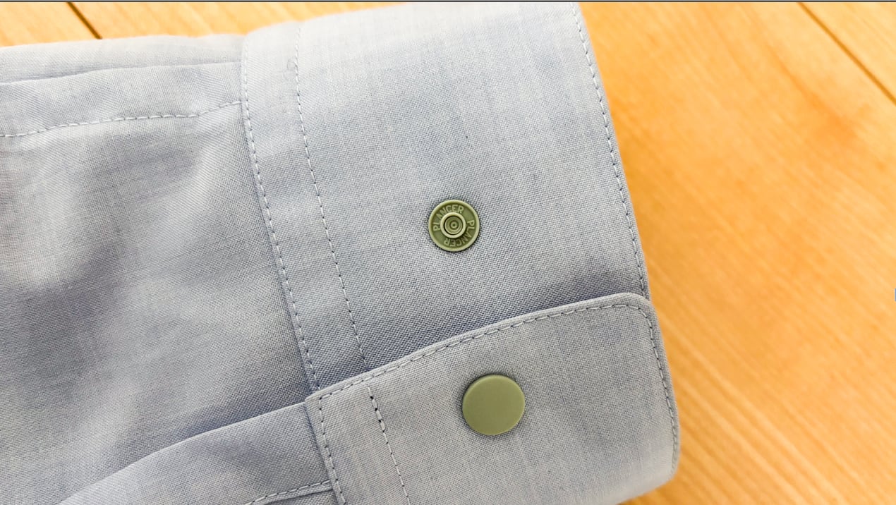 【使いやすさの細部】スナップボタン仕様:開け閉めがスムーズで温度調整がラク。上質なシャツだけど気負わず使ってほしい設計です。