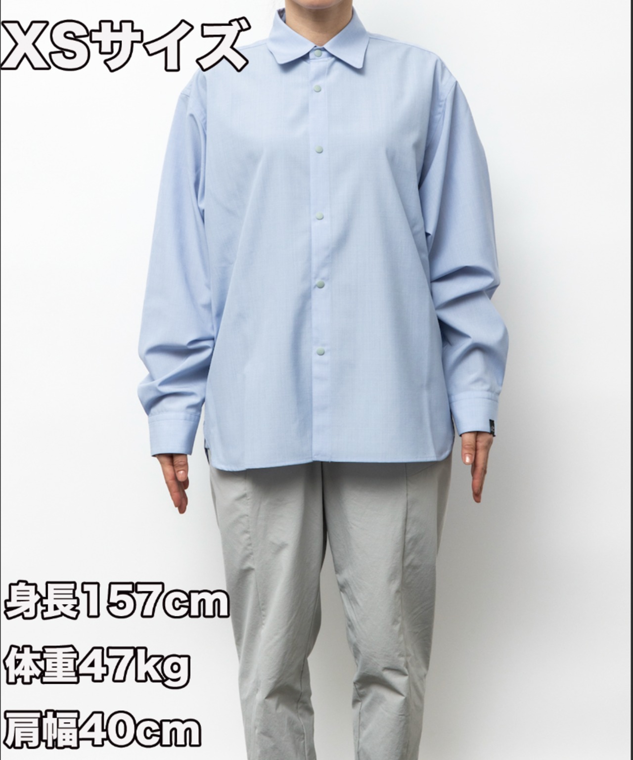 袖口ボタンは2つ:内側で手首にピタッと止める/外側で時計の上から留める。状況に合わせて調整できます。肩倒し縫い:縫い目が安定しやすく、着用や洗濯を繰り返してもラインが崩れにくい方向に。